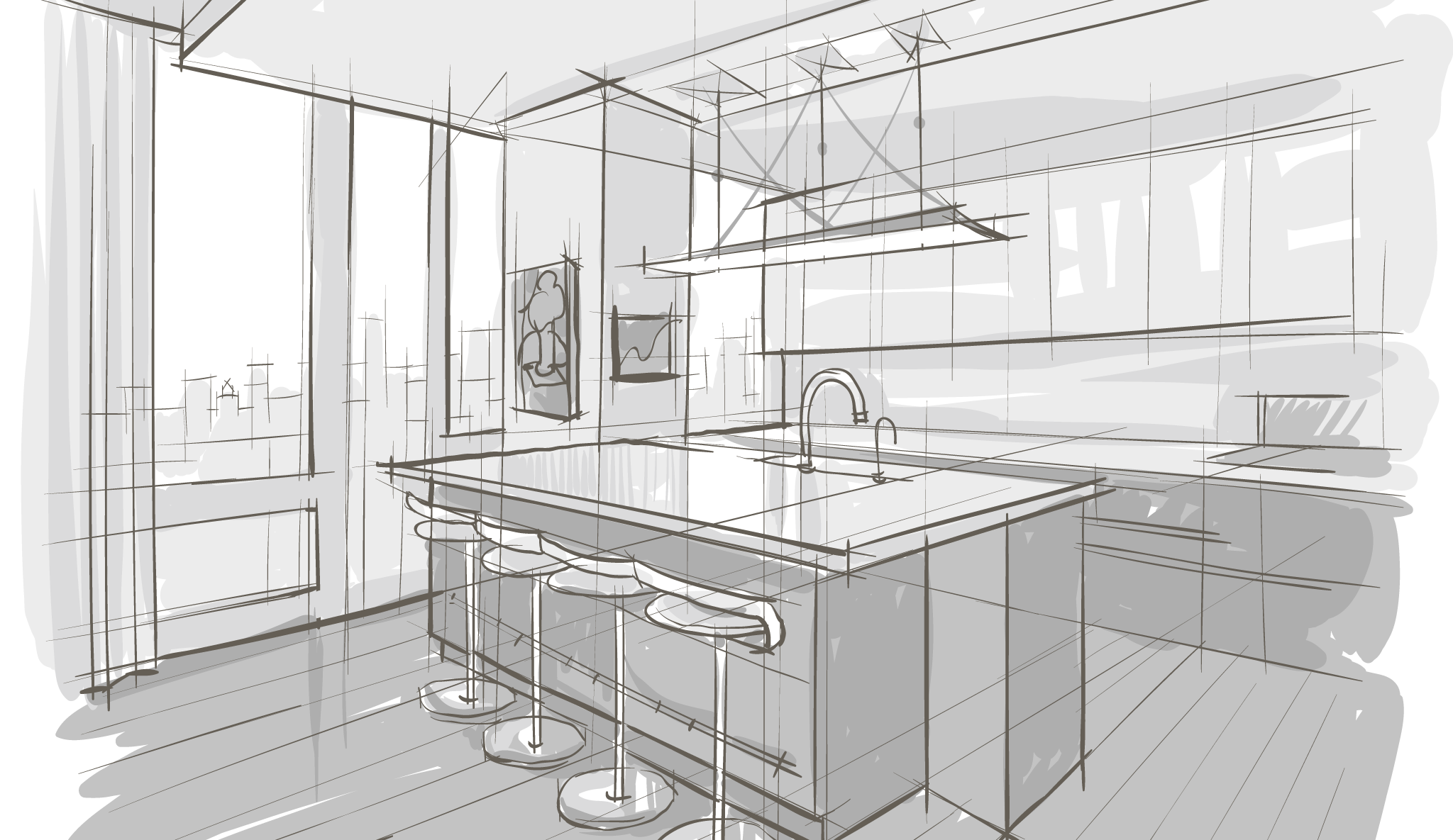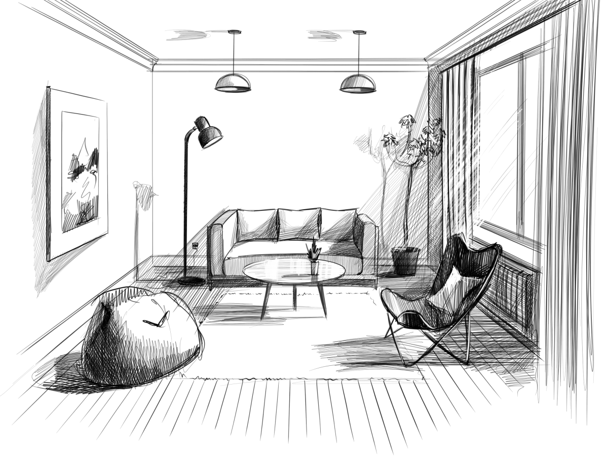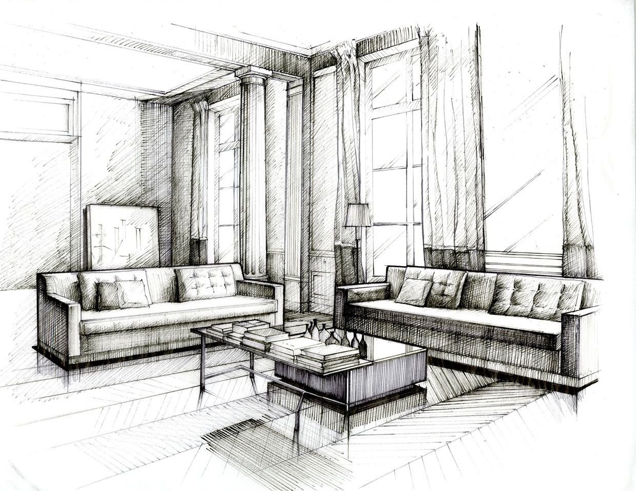 Скетчинг интерьера карандашом
