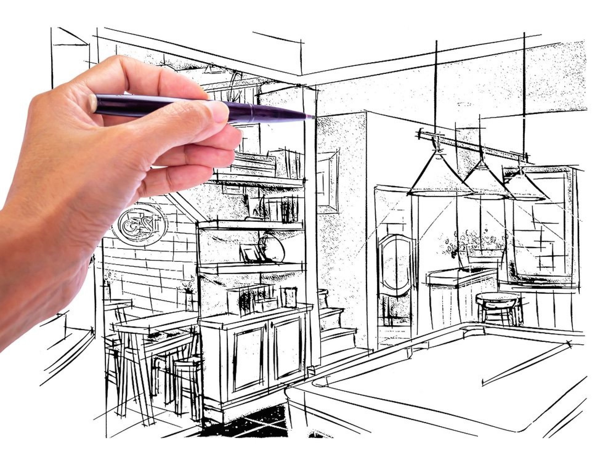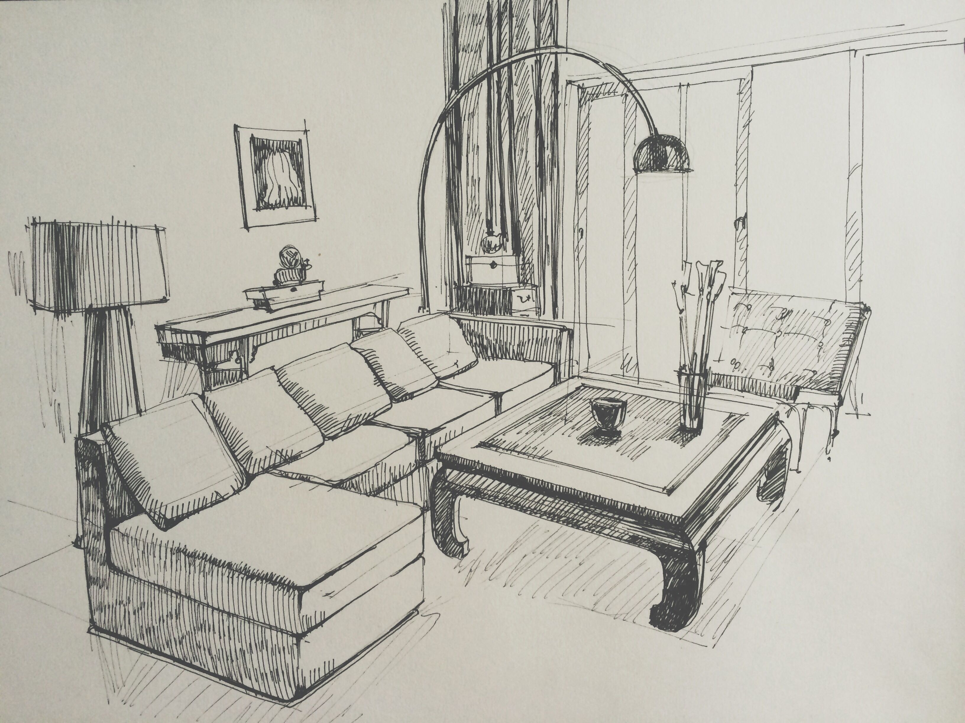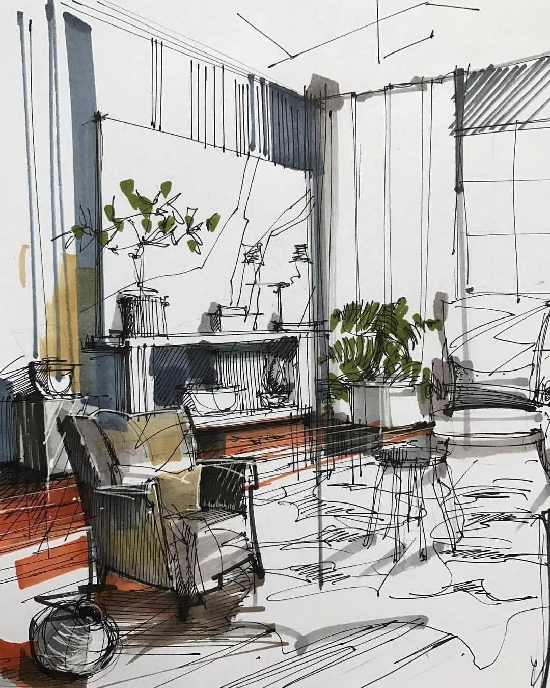 Скетчинг интерьера карандашом