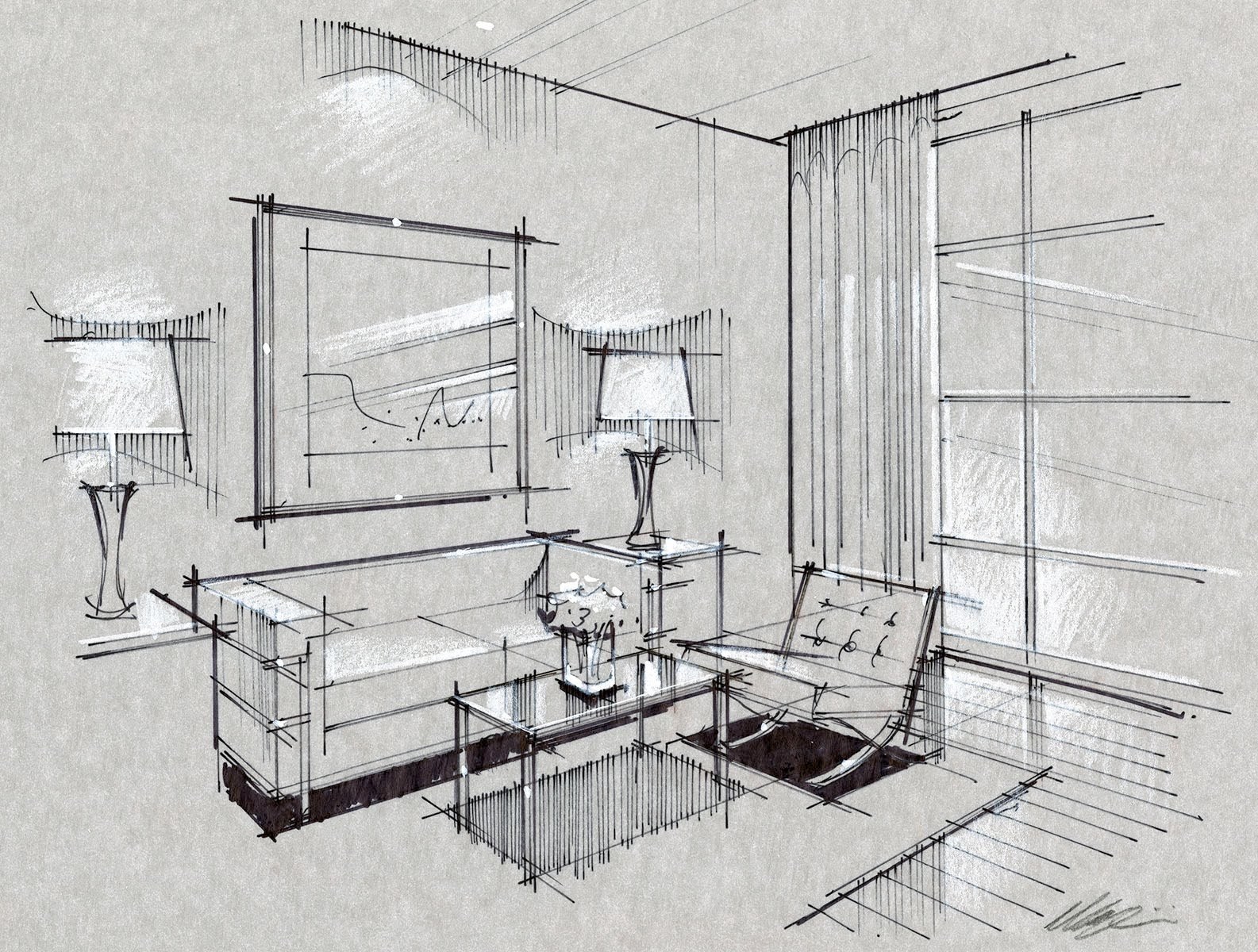 Архитектурный скетч интерьер