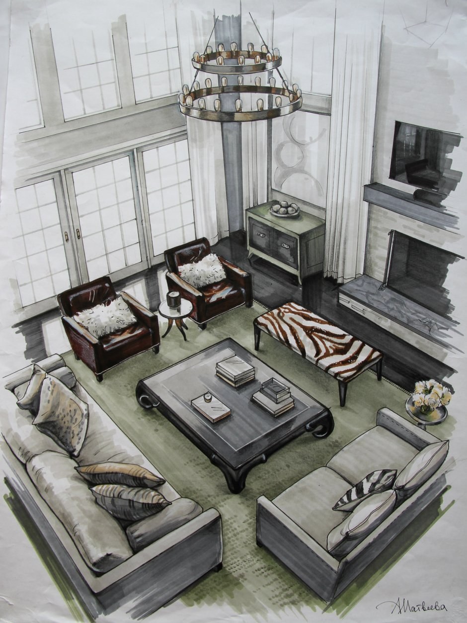 Дизайнерские скетчи интерьера