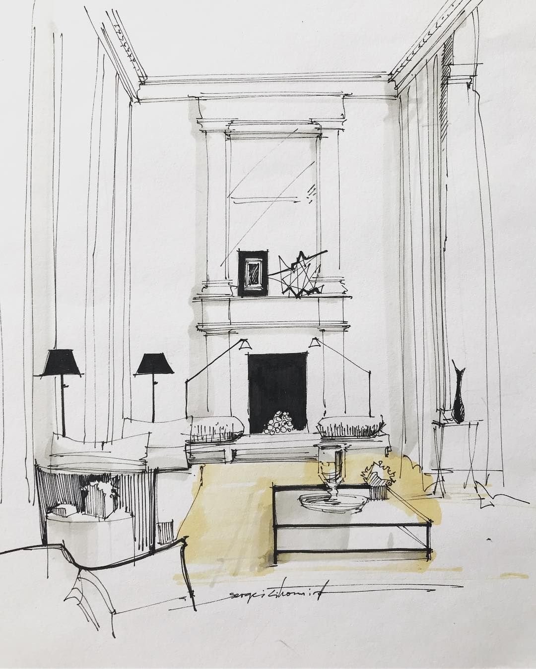Сергей Тихомиров - интерьерный скетчинг маркерами