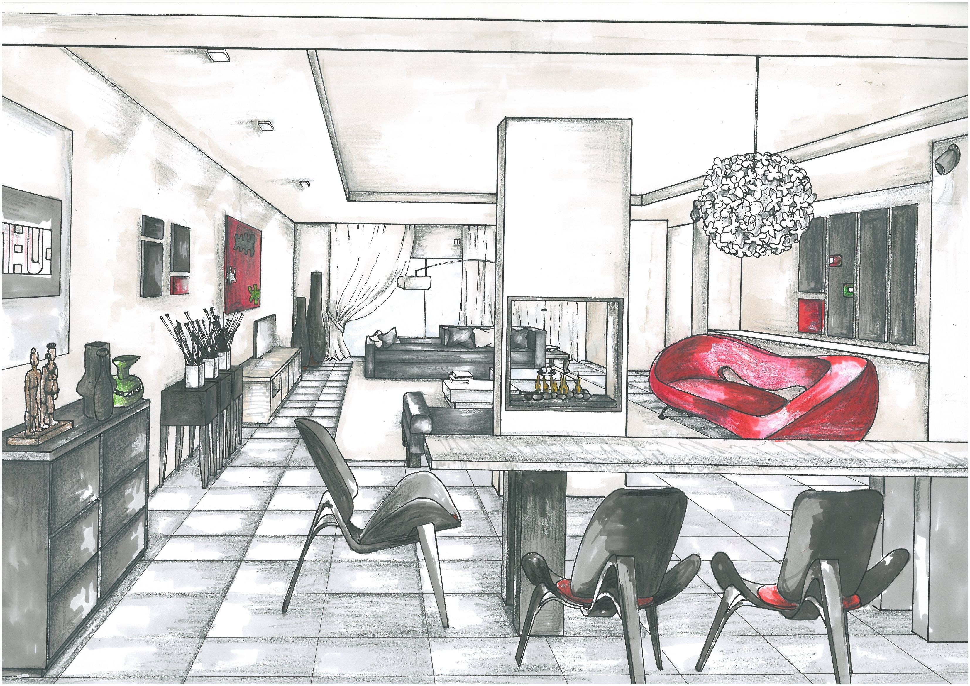 Скетч интерьера фронтальная перспектива