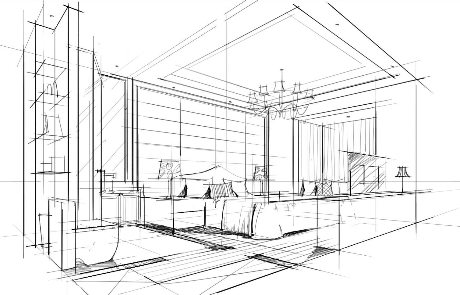 Скетчевый набросок интерьера перспектива