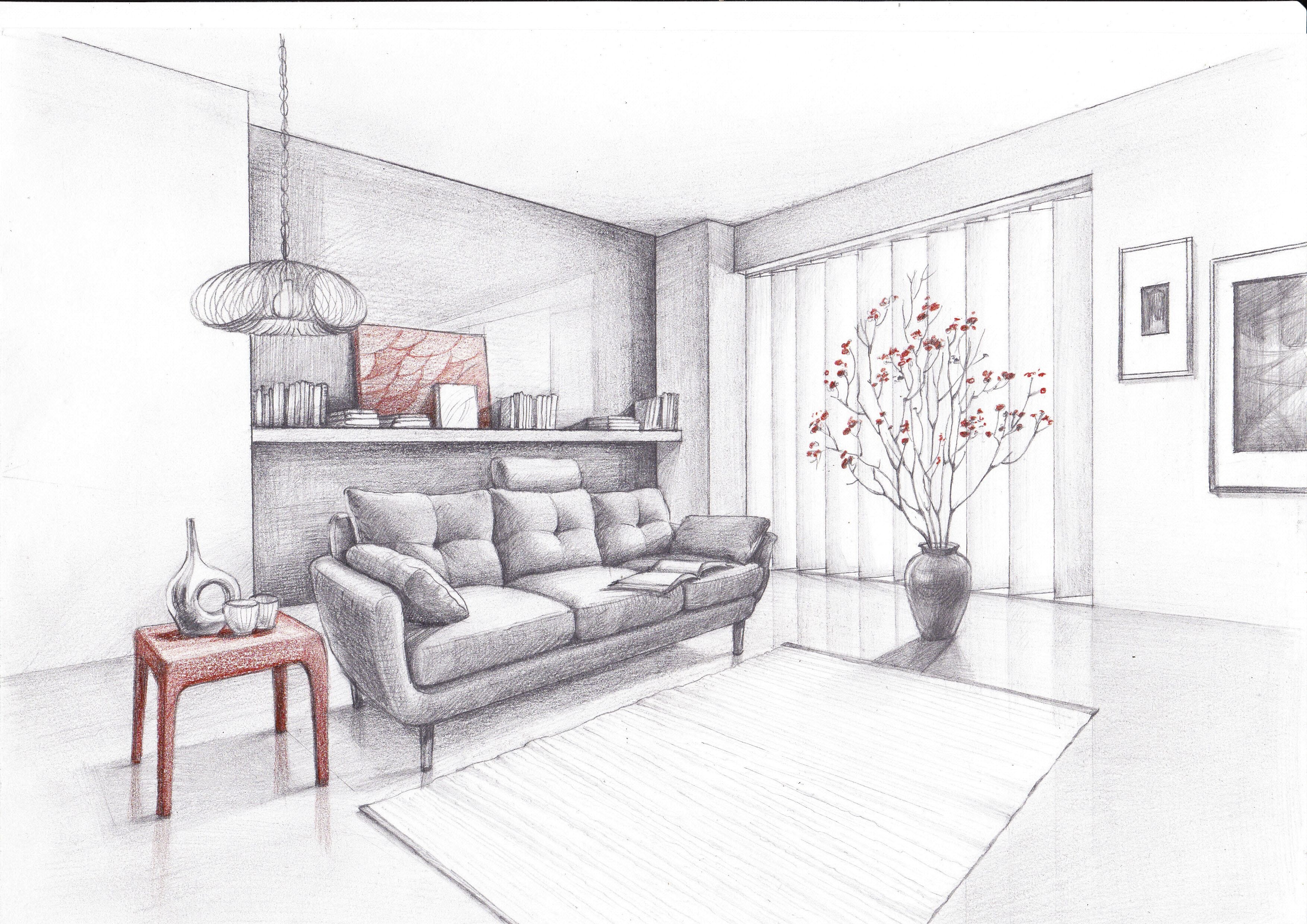 Перспектива фронтальная скейч интерьер