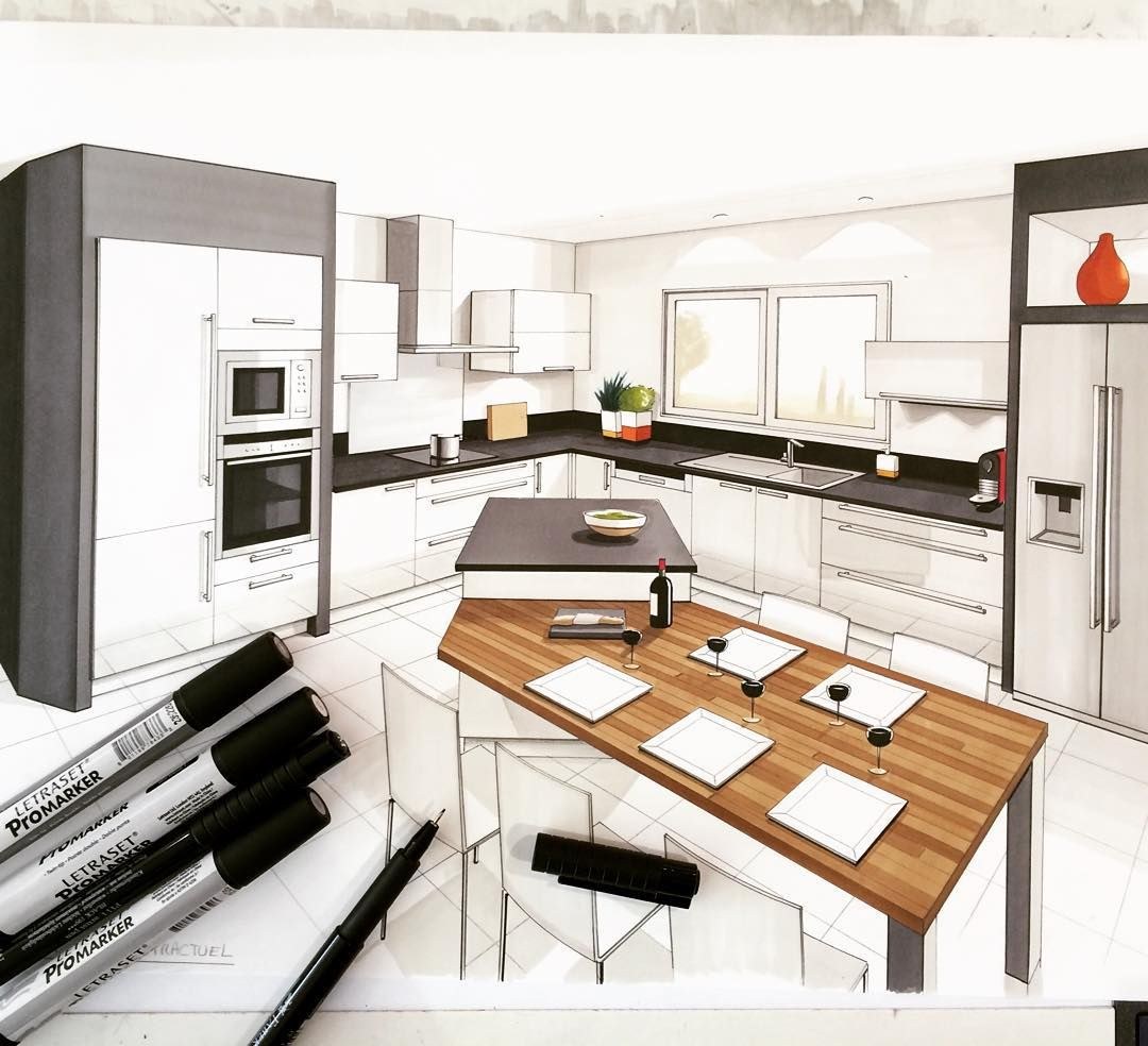 Скетч интерьера кухни