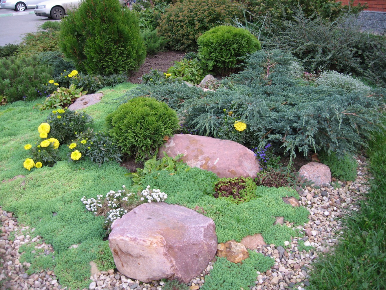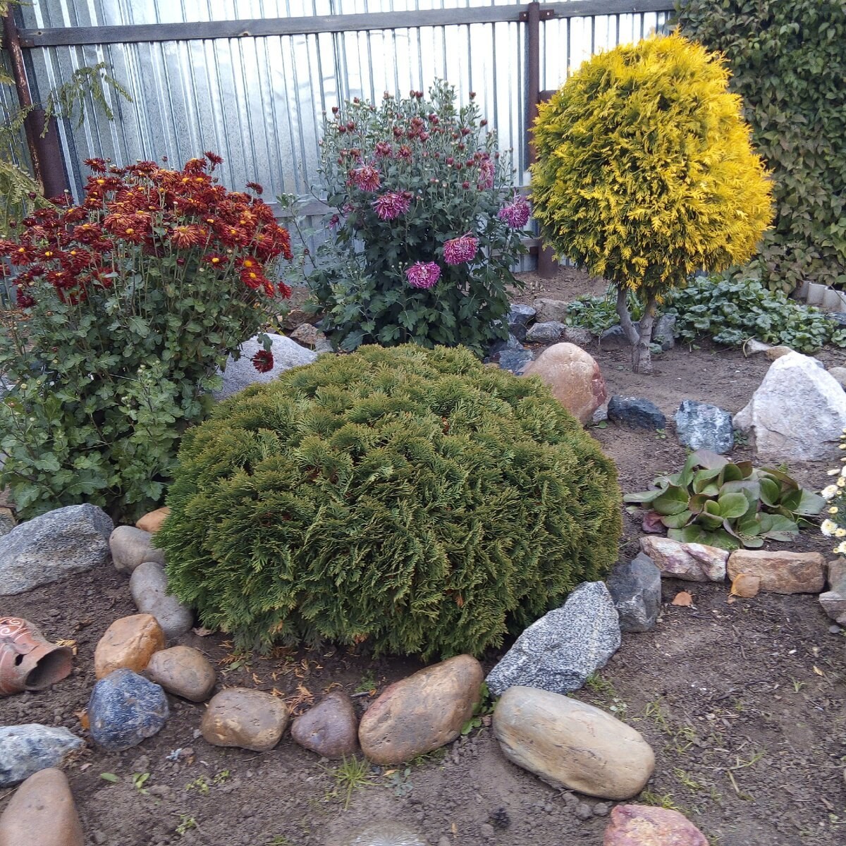 Туя шаровидная Даника с отсыпкой мраморной крошкой