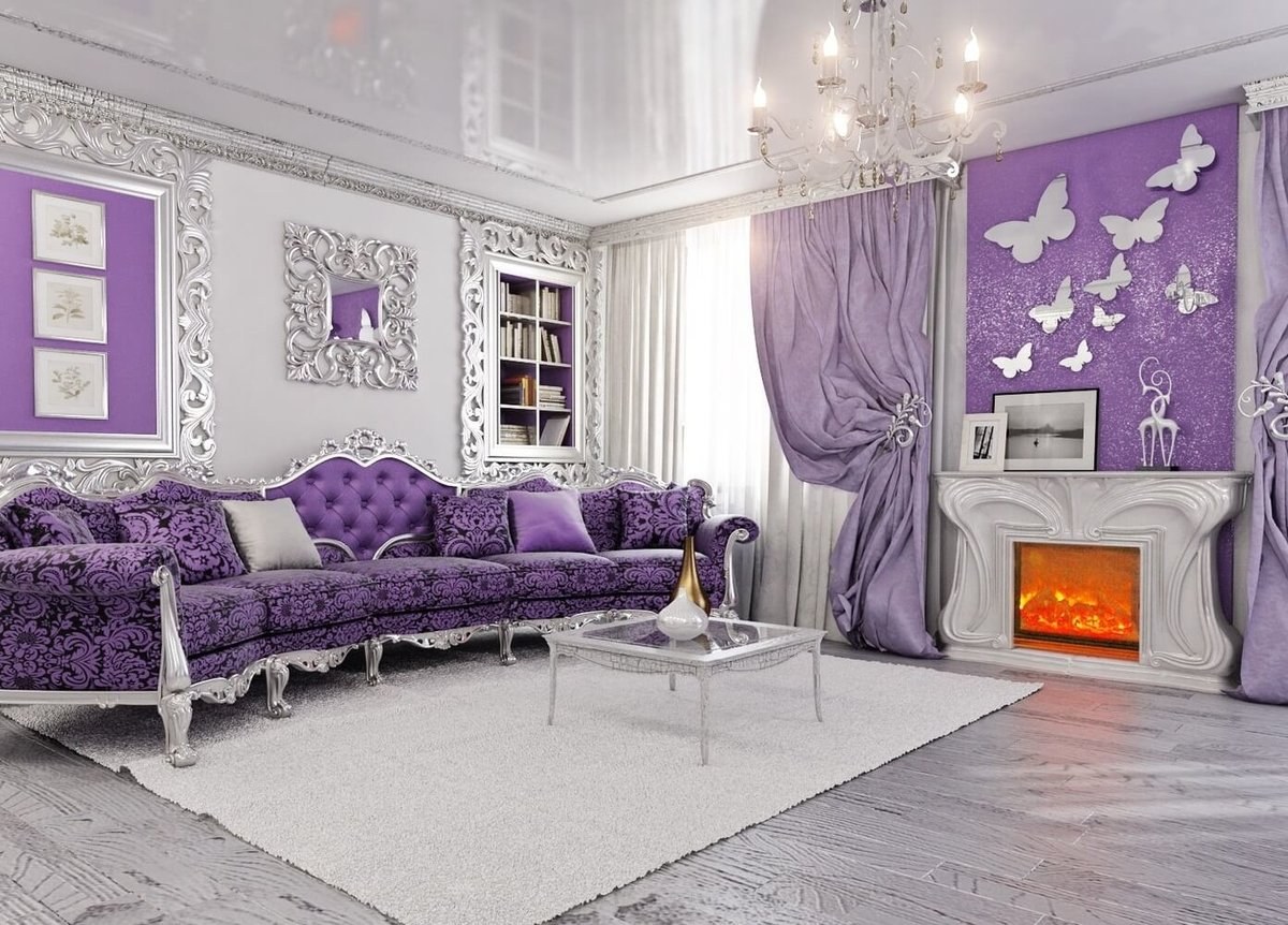 Лавандовый цвет в интерьере гостиной