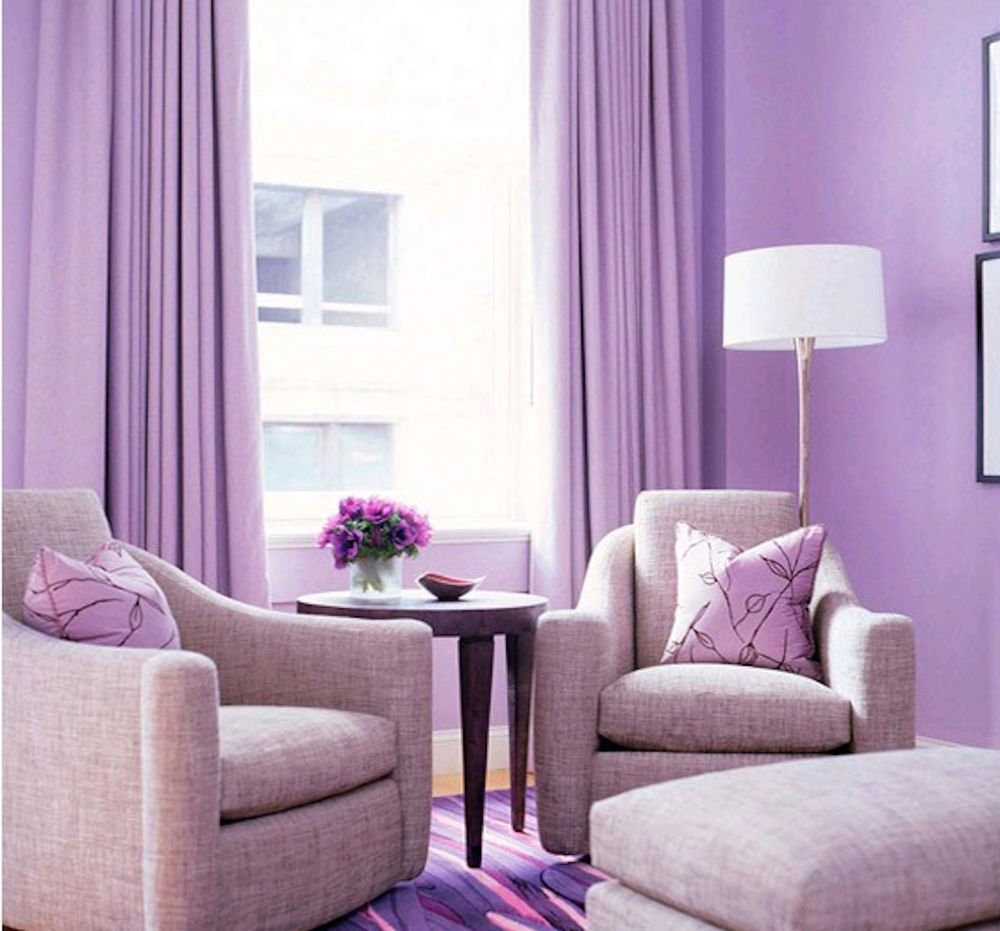 Сиреневые стены в гостиной