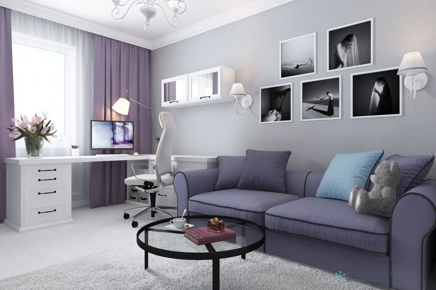 Серый с фиолетовым в интерьере