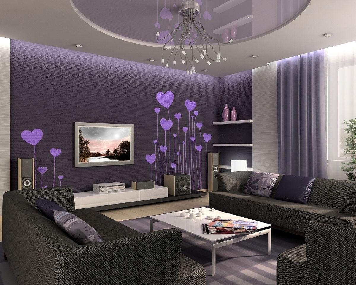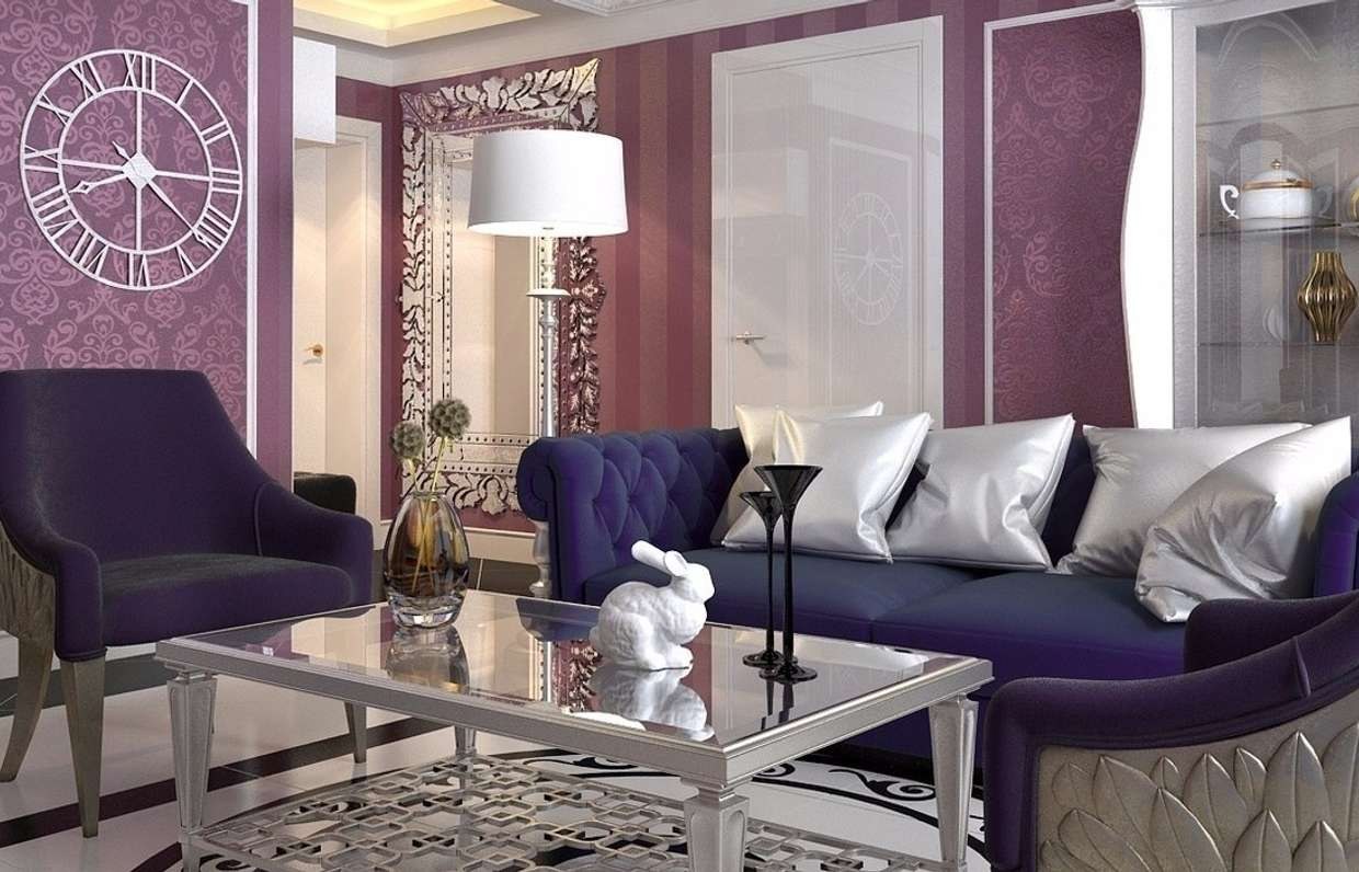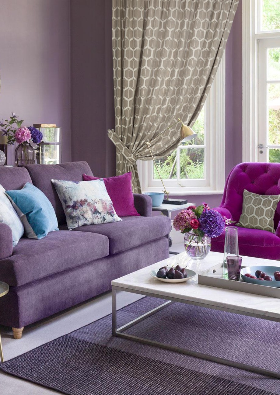 Фиолетовый в интерьере гостиной