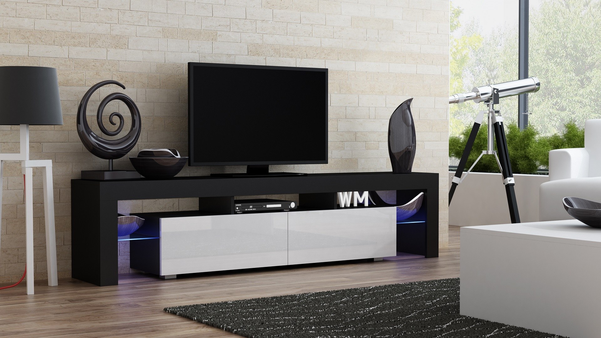 Тумба ТВ Домино 1800 черный глянец