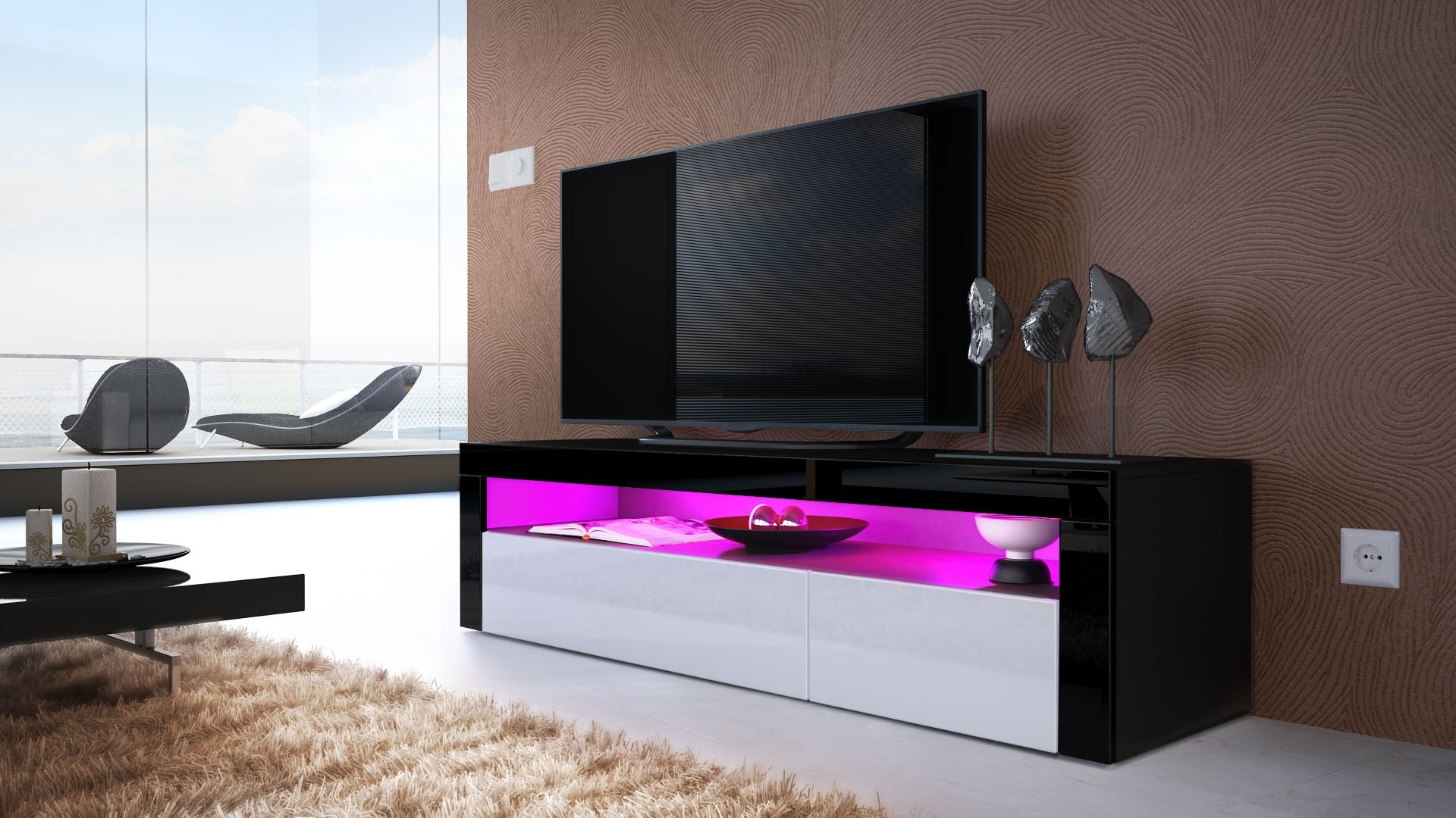 Тумба под ТВ Кастро (белый глянец/черный)