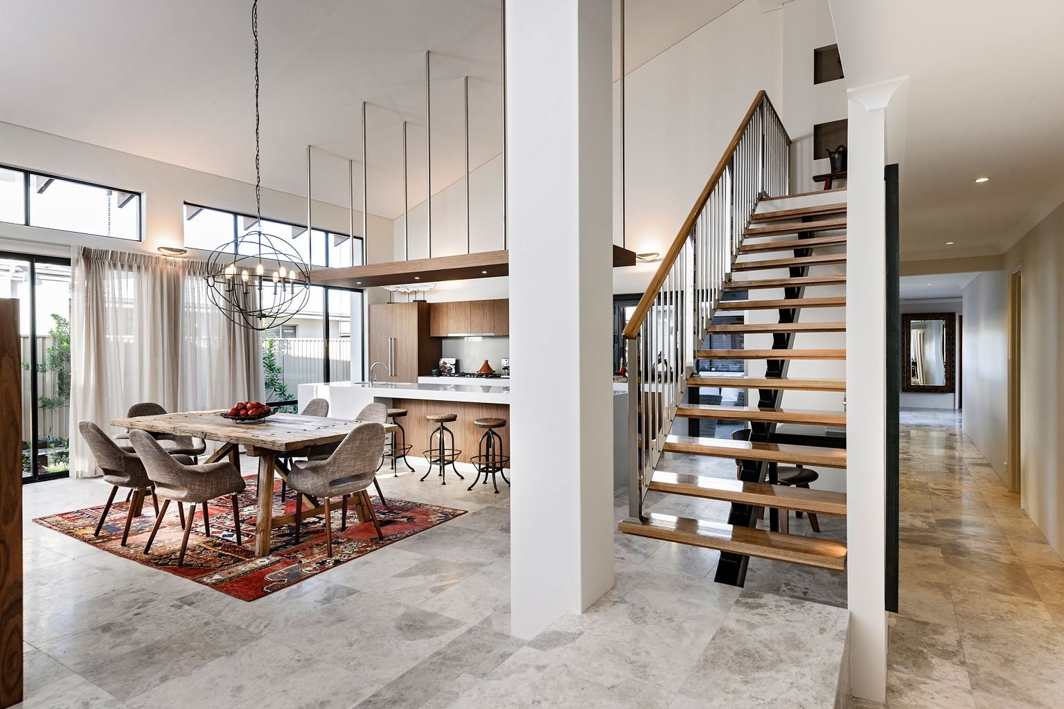 Лестница между кухней и гостиной