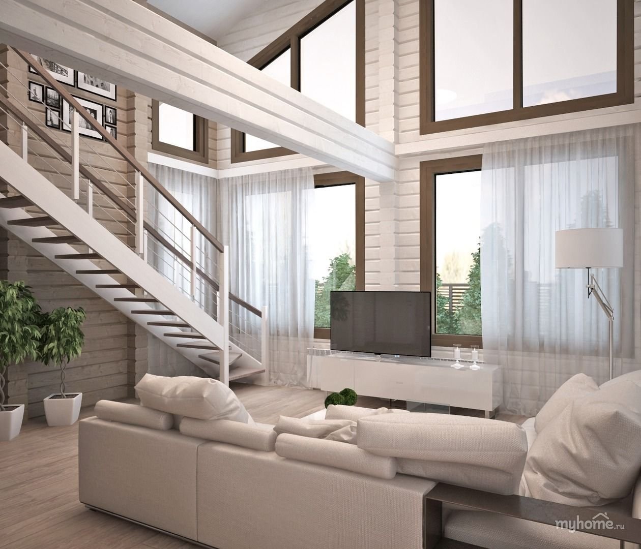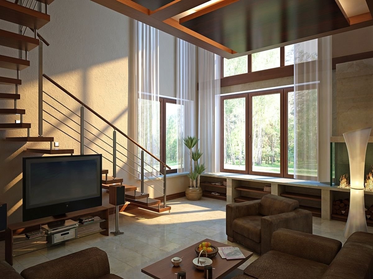 Гостиная в двухэтажном доме