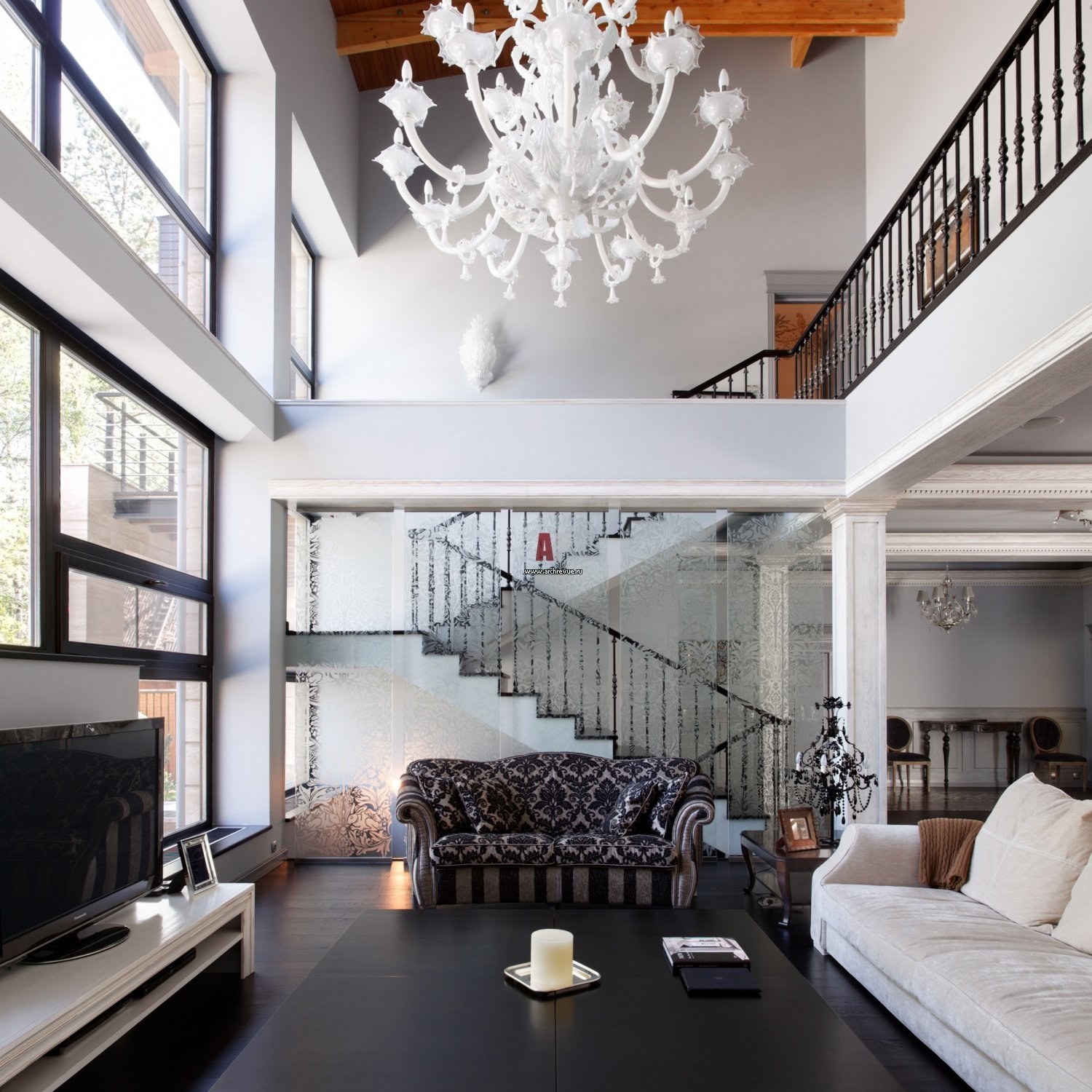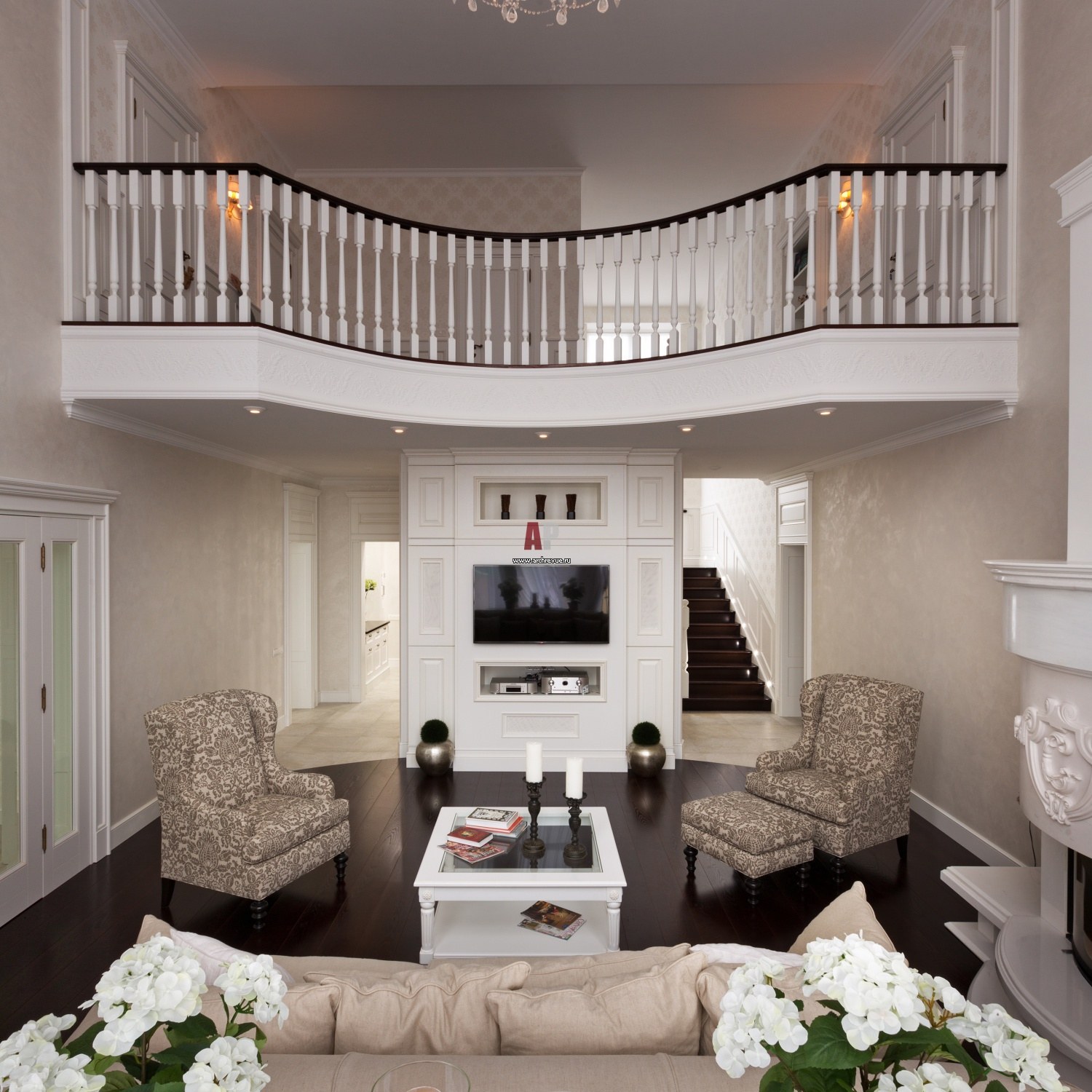 Гостиная с лестницей