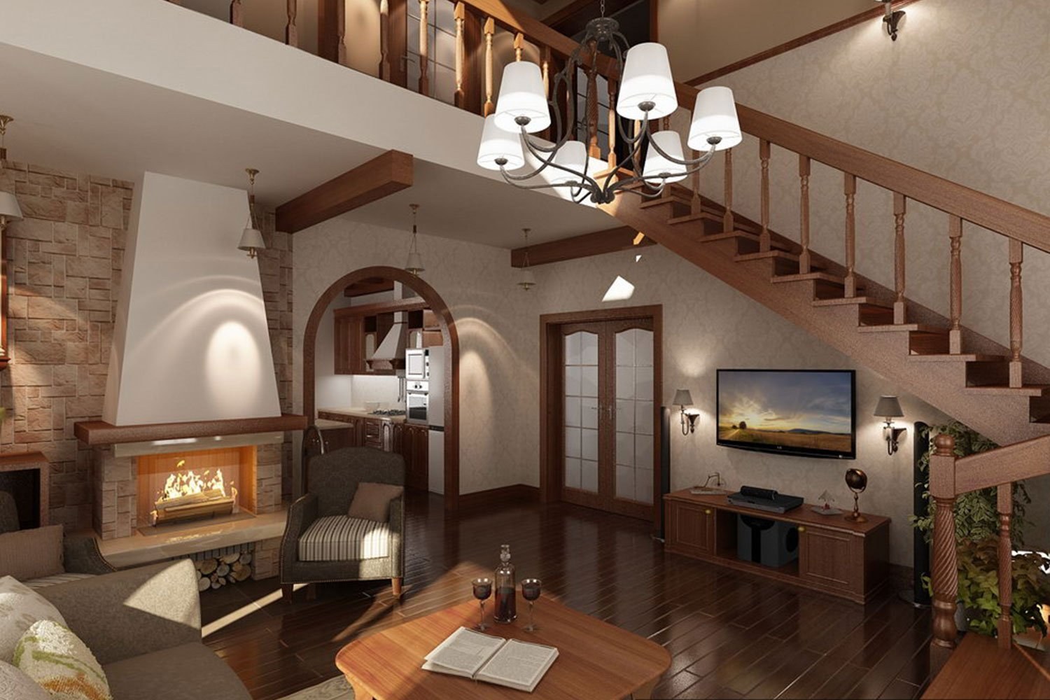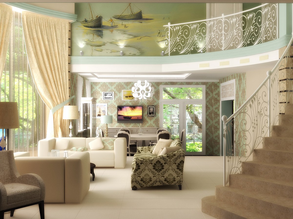 Интерьер двухэтажного коттеджа