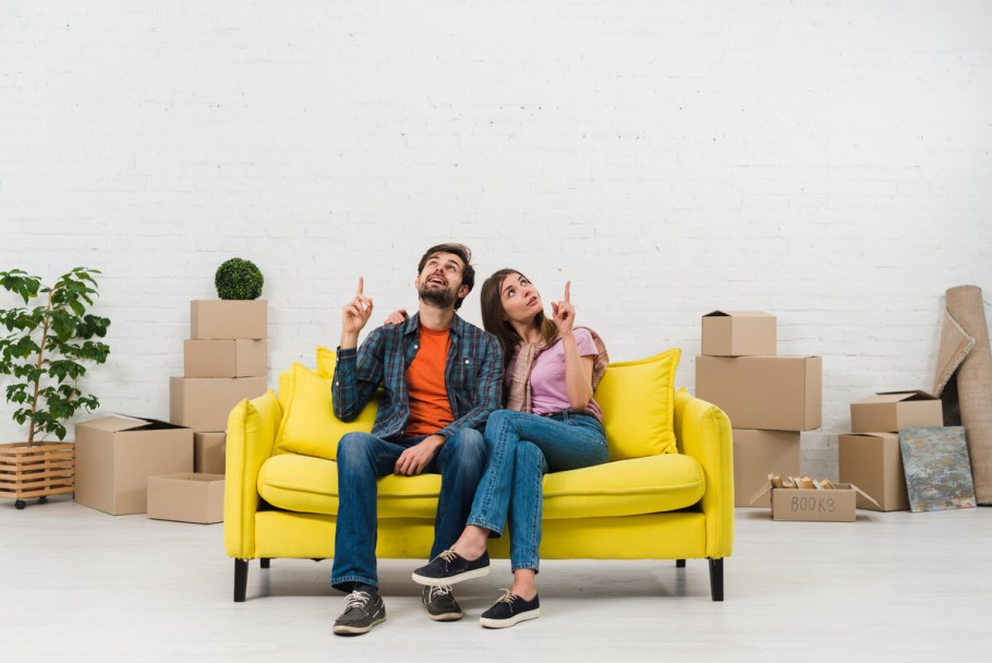 Пара отдыхает на диване