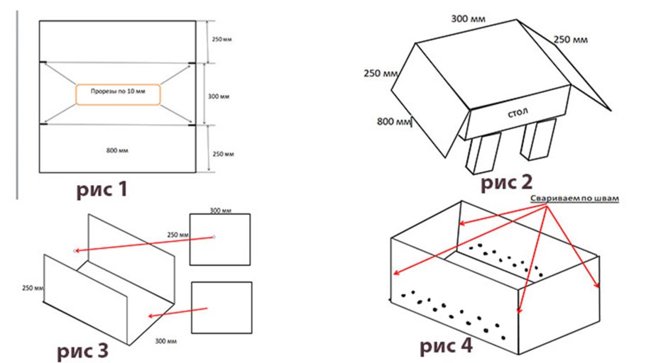 Мангал разборный чертеж с размерами без сварки