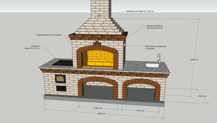 Печь с мангалом и казаном для беседки порядовка и схема