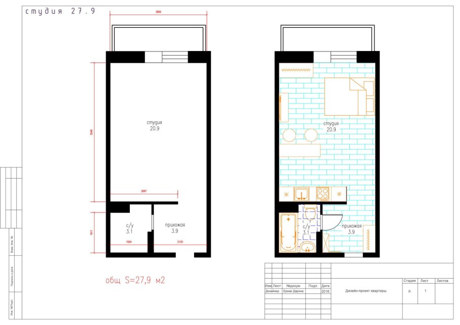 Перепланировка однокомнатной квартиры в двухкомнатную 48 кв.м