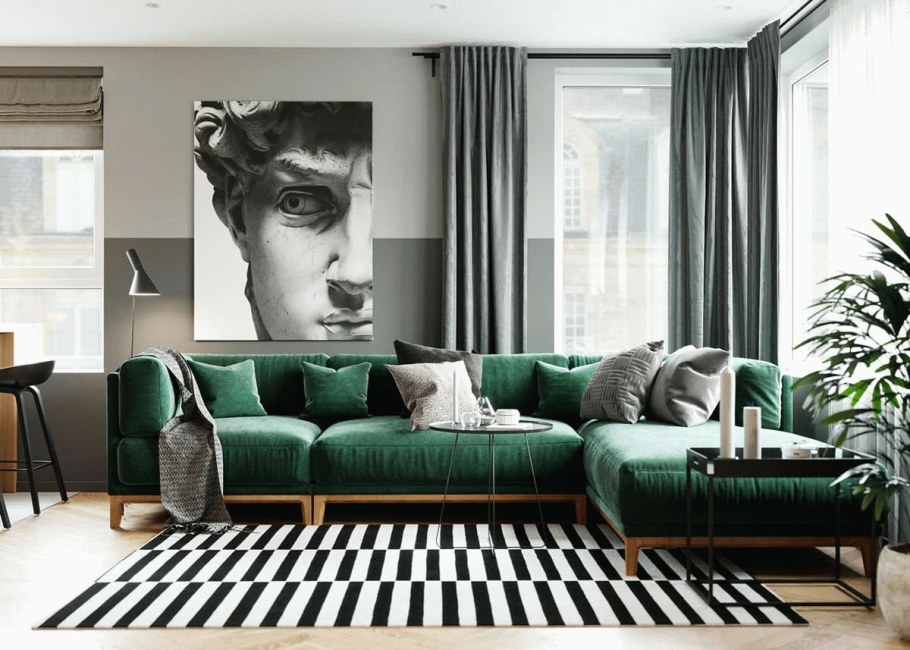 Какой ковер подойдет к зеленому дивану (63 фото)
