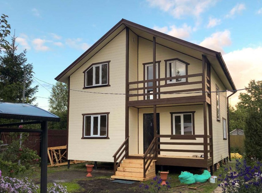 Красивый каркасный дом с террасой