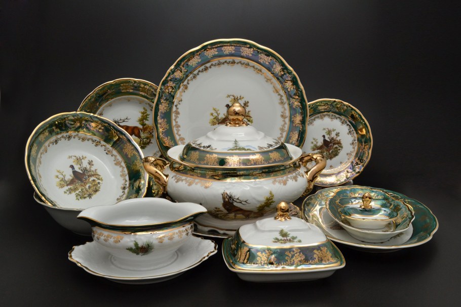 Сервиз столовый охота зеленая Карлсбад