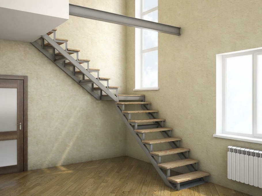 Лестница на косоурах с забежными ступенями с поворотом на 90