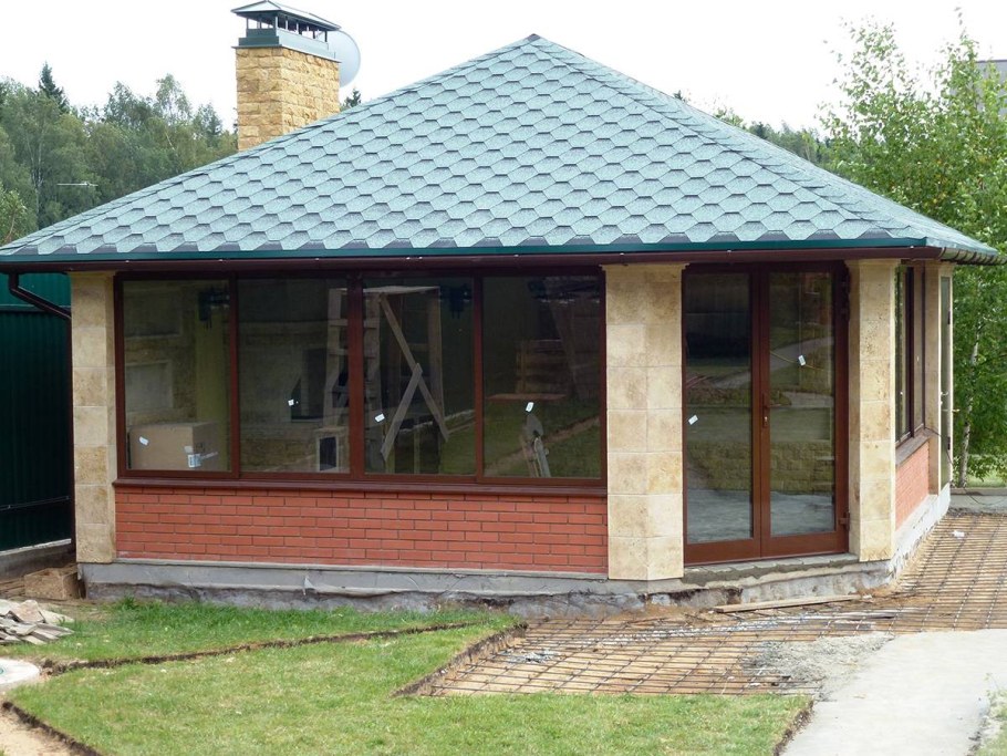 Крытая беседка застекленная с мангалом и барбекю 4х6