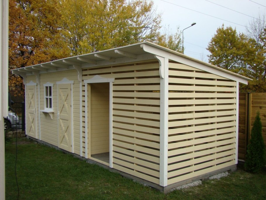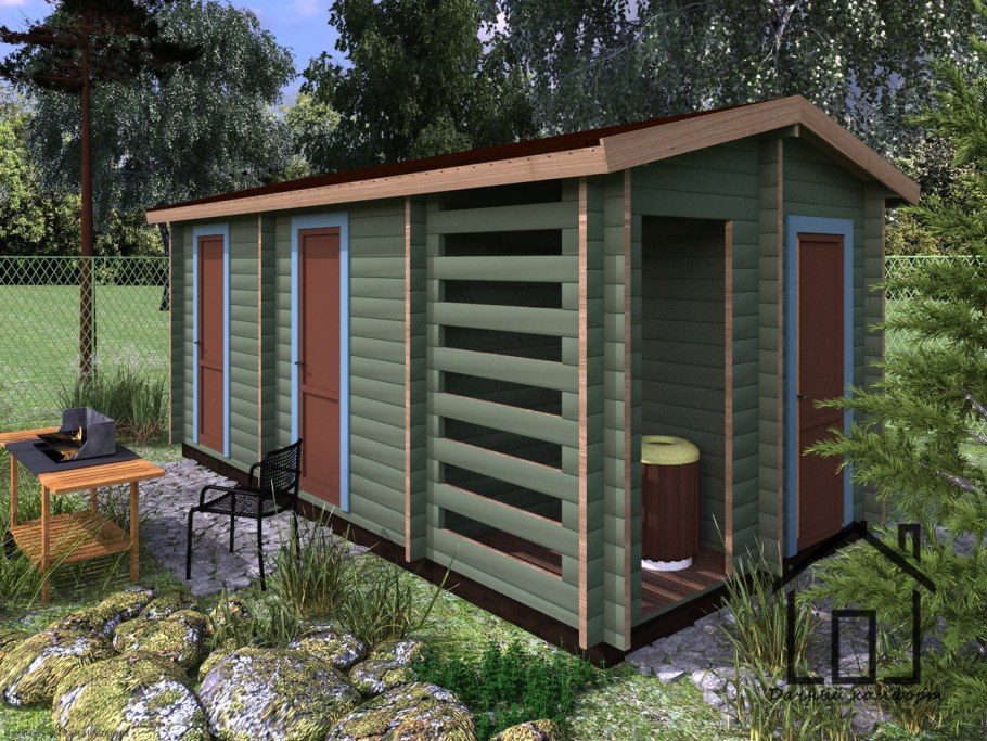 Туалет душ и сарай под одной крышей для дачи