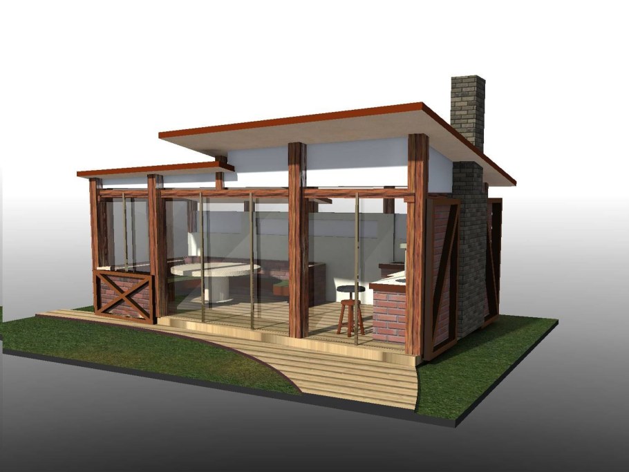 Застекленная беседка с барбекю