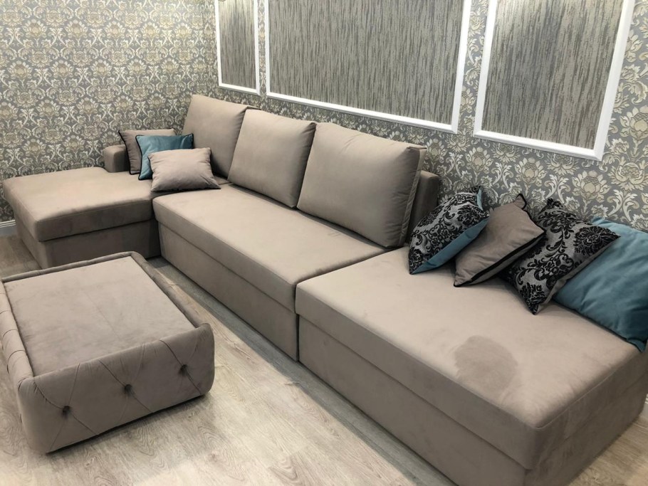Диван прямой с приставным пуфом в комплекте (58 фото)