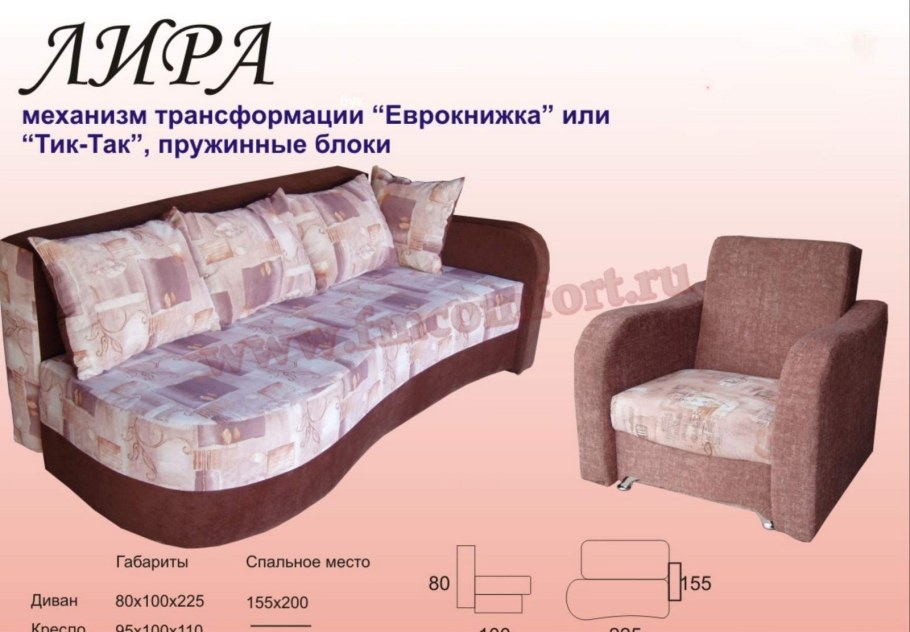 Диван еврокнижка "стиль" 734, тик-так, пружинный блок, без подлокотников