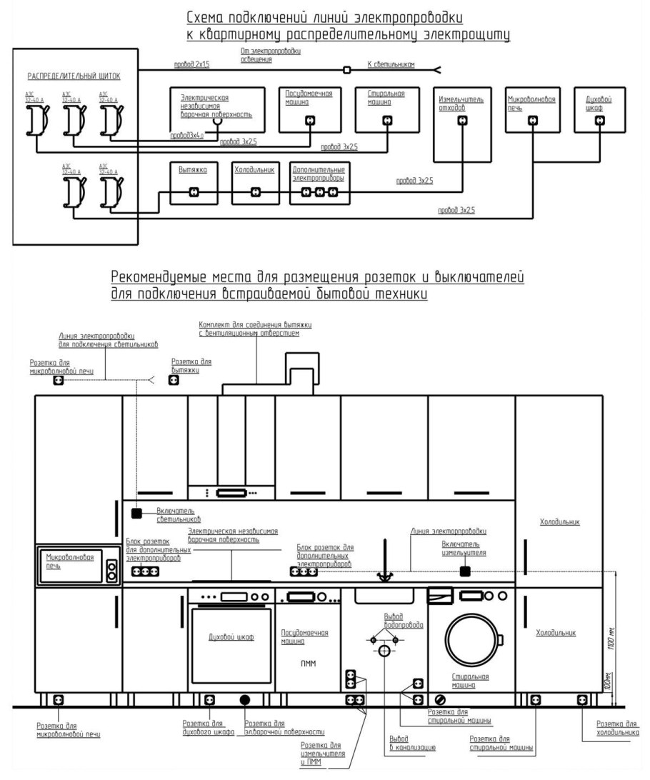 Как установить розетки на кухне под встраиваемую технику для кухни
