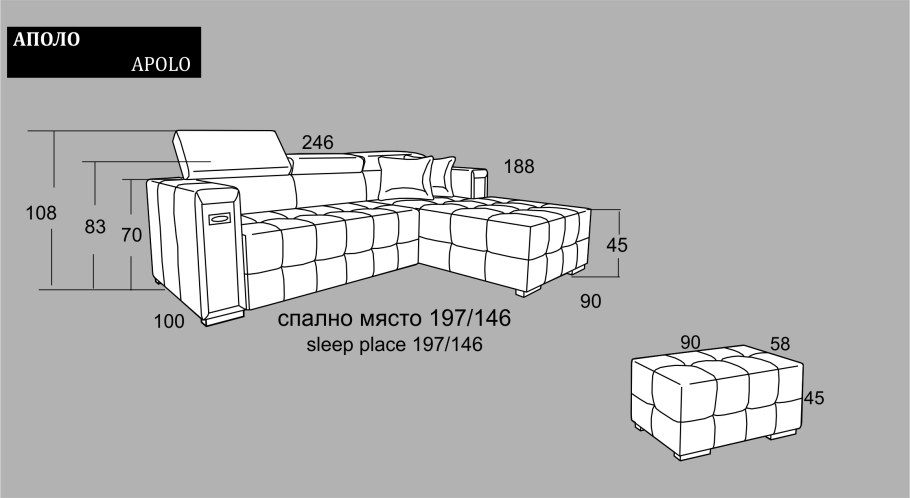 Диван Estelio коллекция Evoque комплектация Corner Sofa (угловой диван модуль 5+10)
