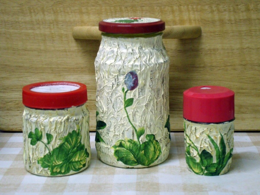 Декупаж стеклянных банок для кухни