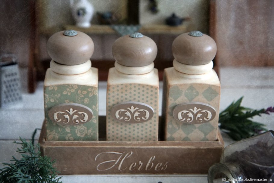 Декупаж баночек для специй с окошком