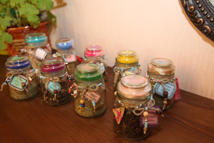 Декор стеклянных баночек для специй