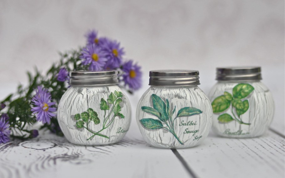 Стеклянные баночки для специй декупаж
