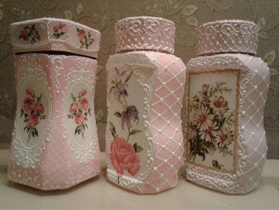 Декупаж банок и бутылок