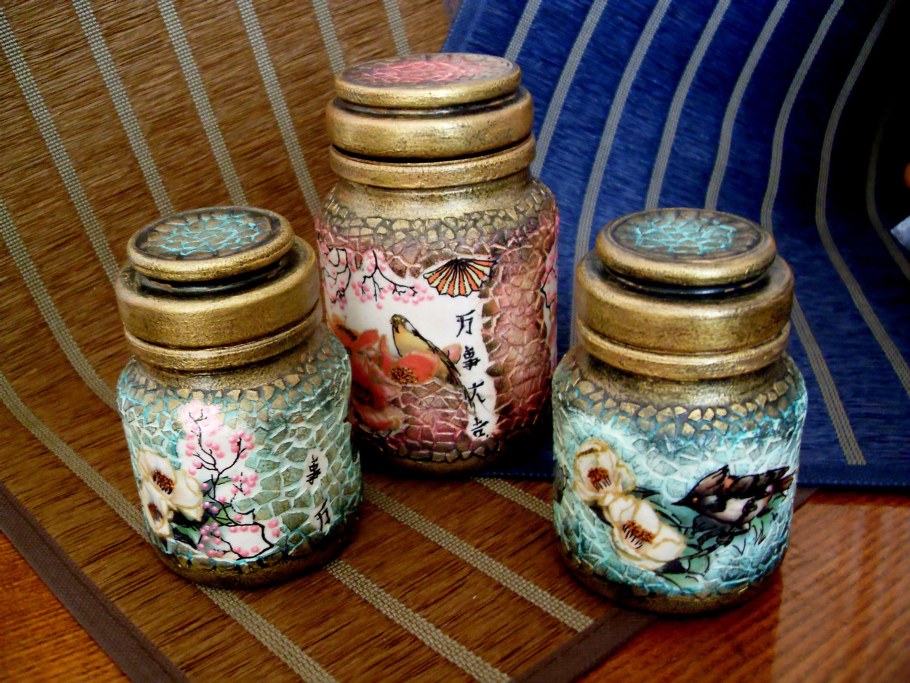 Декупаж стеклянных банок салфетками