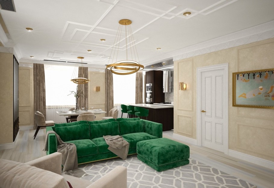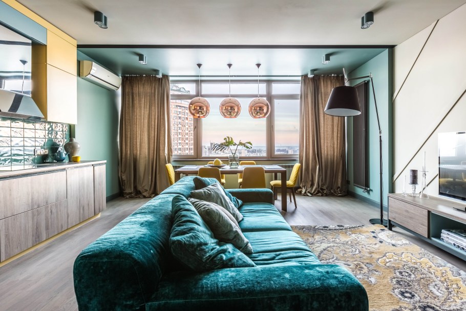 Дизайн гостиной с изумрудным диваном (69 фото)