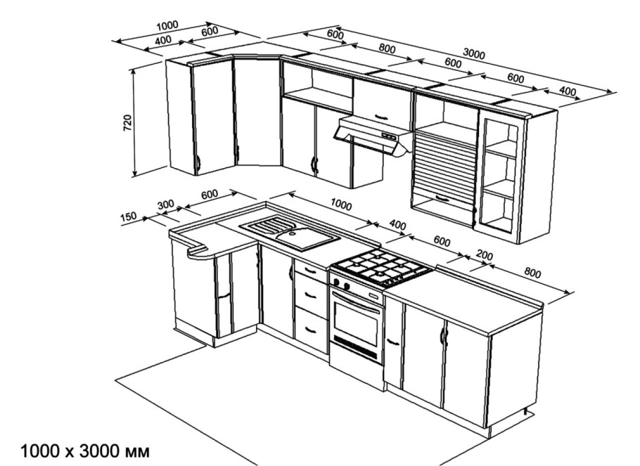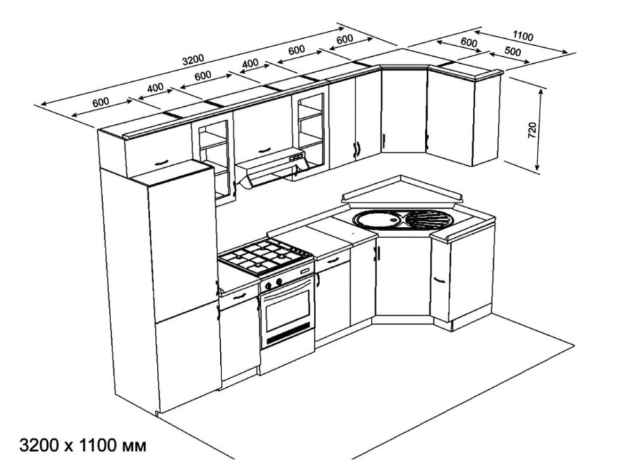 Чертежи кухонных гарнитуров угловых с размерами в хрущевке ,1600-2000мм