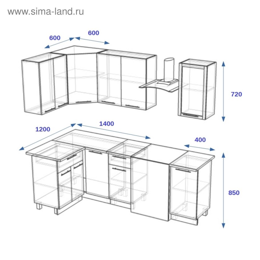 Кухонный мебель угловой 210х200 чертеж с размерами