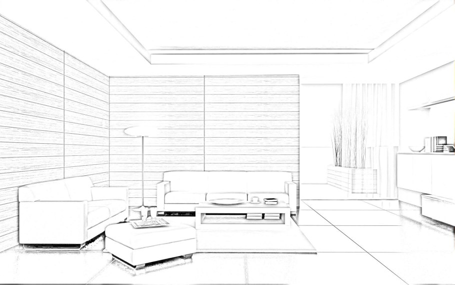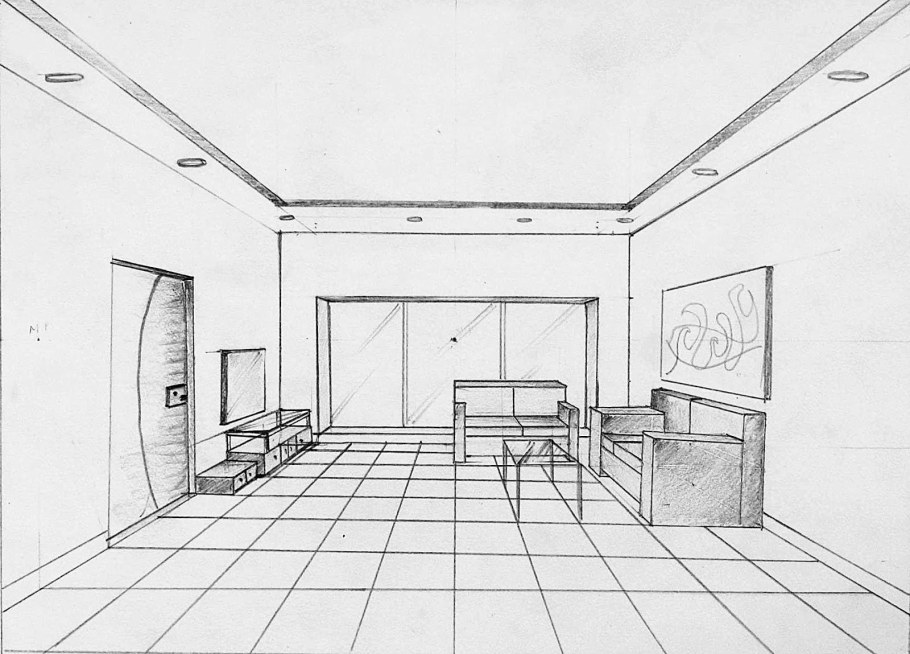 Гостиная в перспективе карандашом