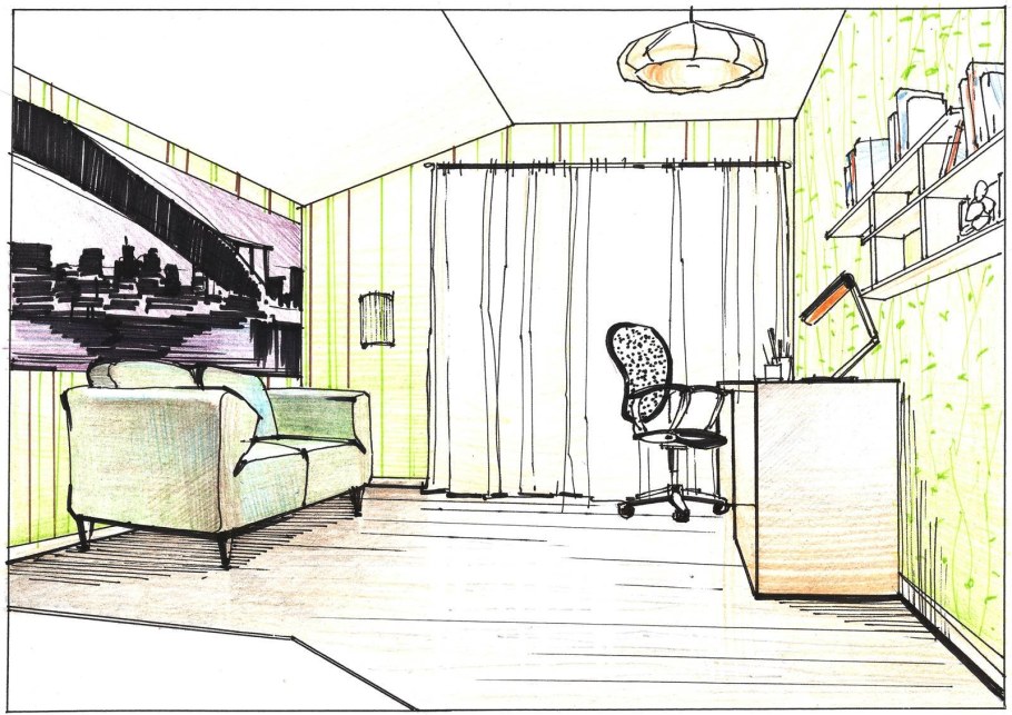 Зарисовка интерьера в угловой перспективе