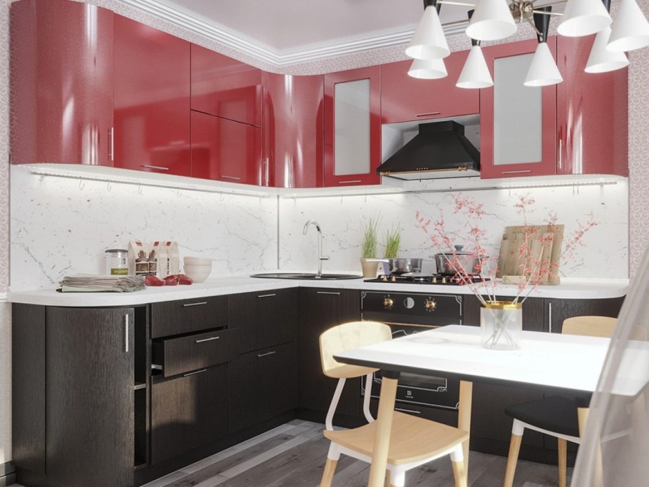 Кухня Валерия страйп красный и белый
