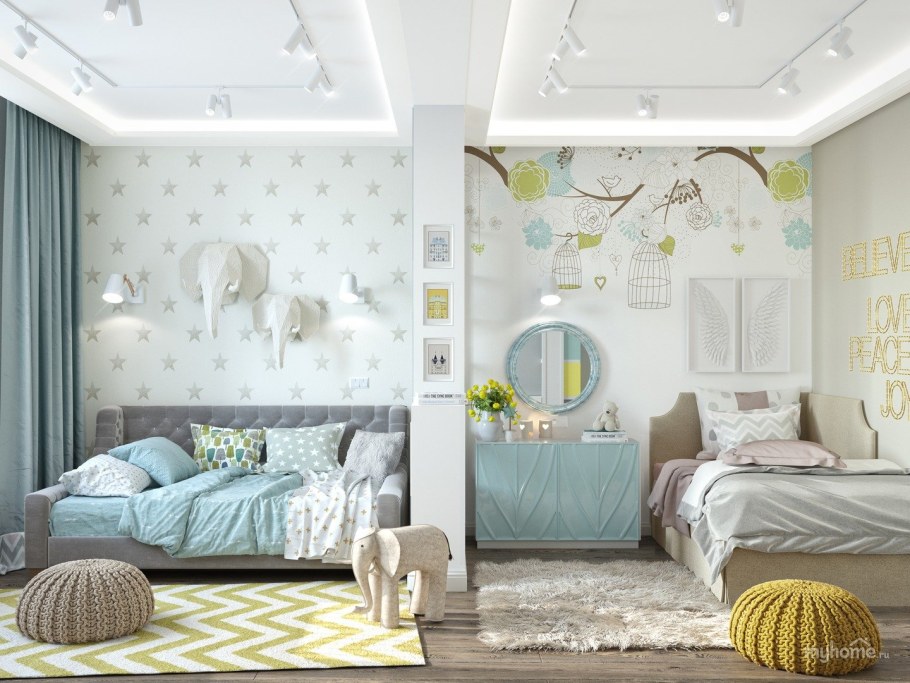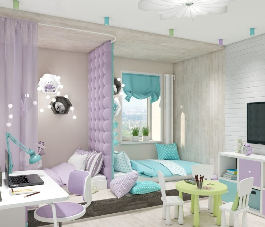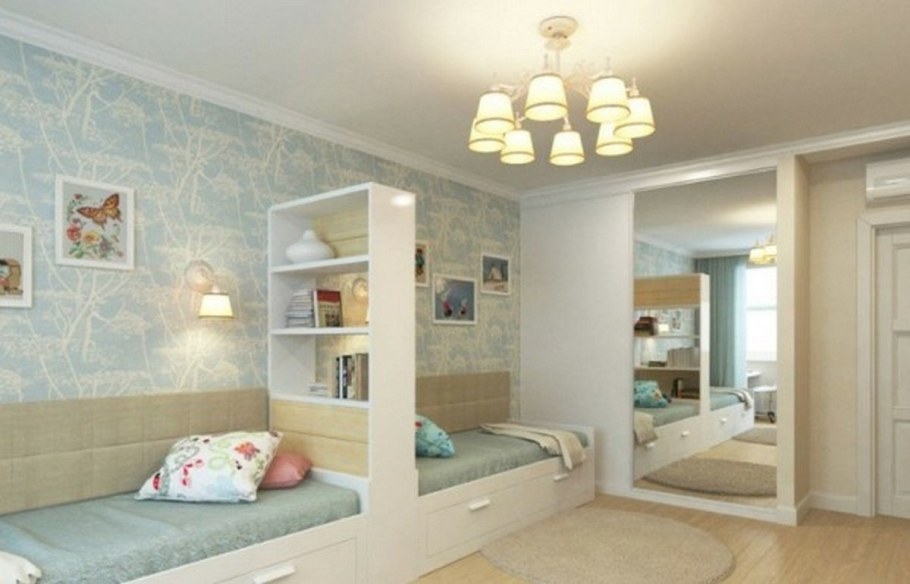 Комната для двоих разнополых подростков 20 кв.м с перегородкой