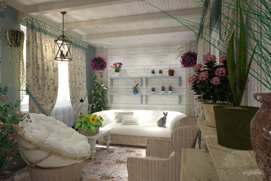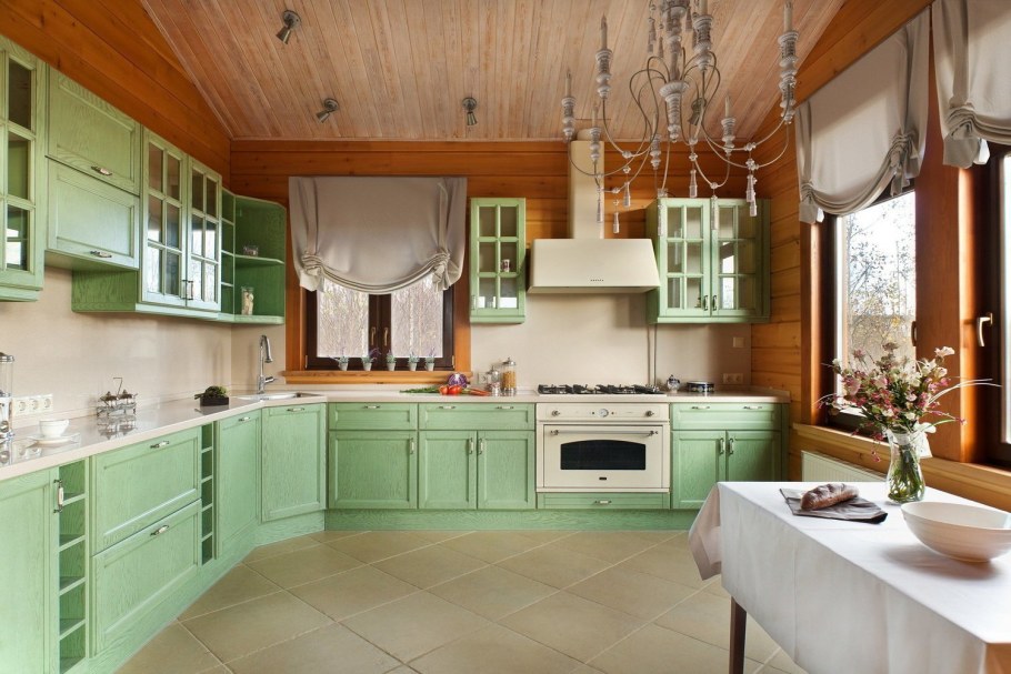 Интерьер кухни в стиле Прованс в доме из клееного бруса