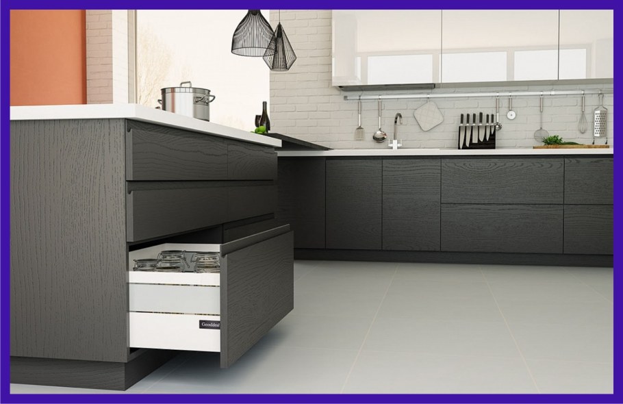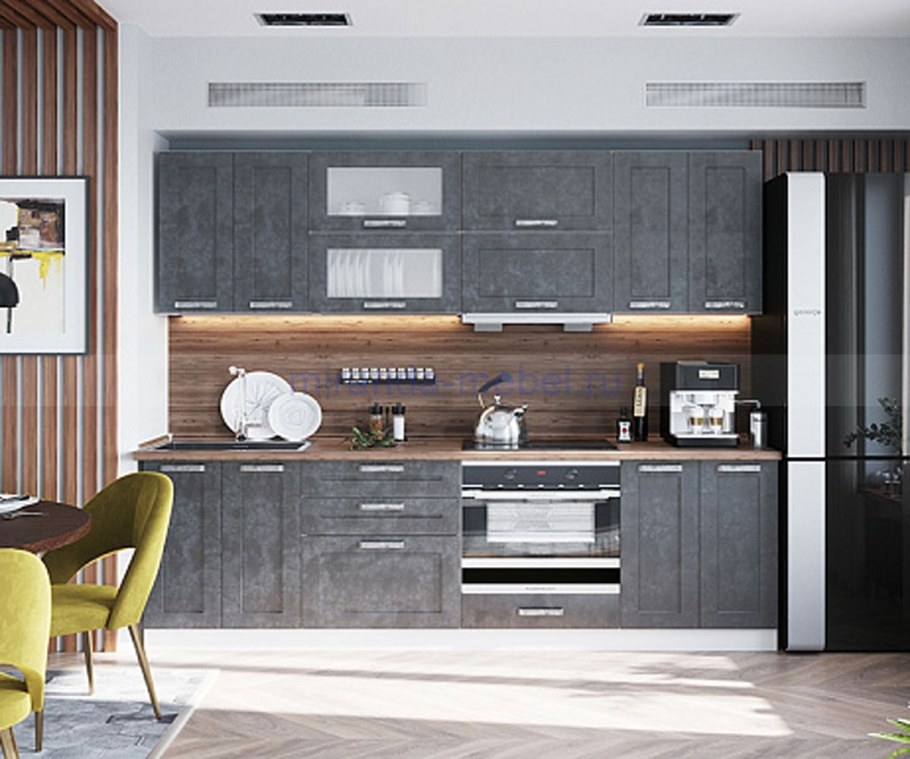 Кухонный гарнитур Амика 2,41х1,51 м серый пыльный/чёрный графит